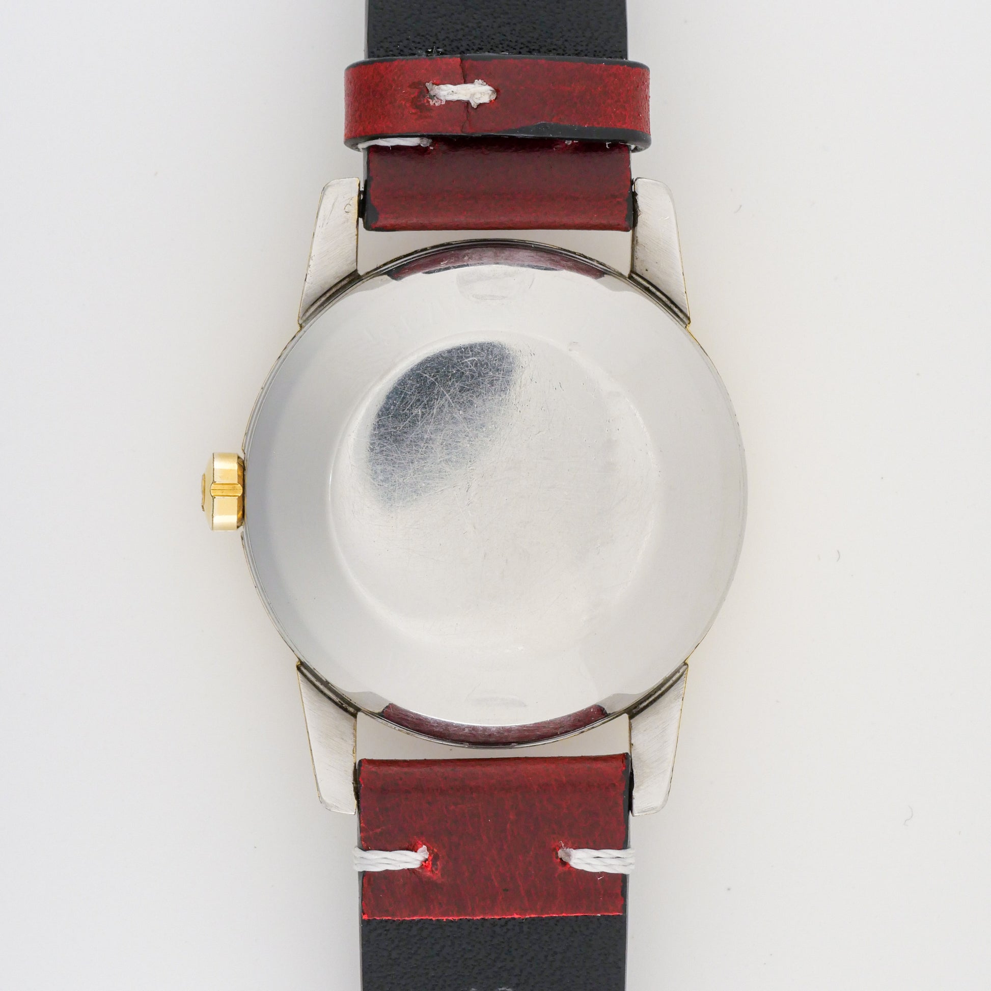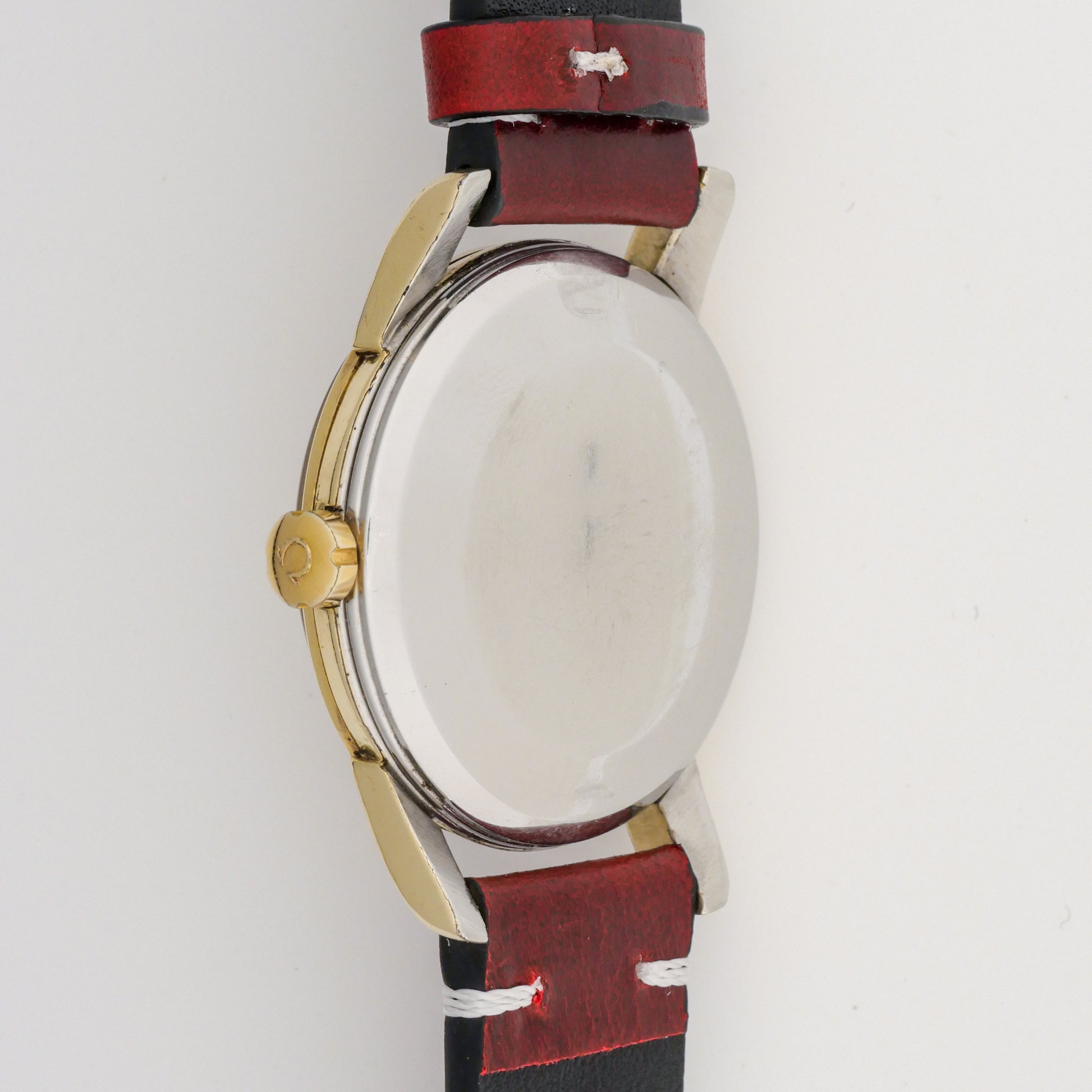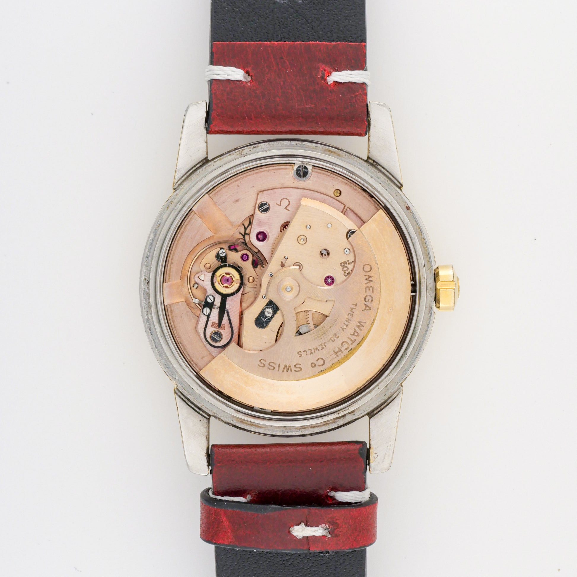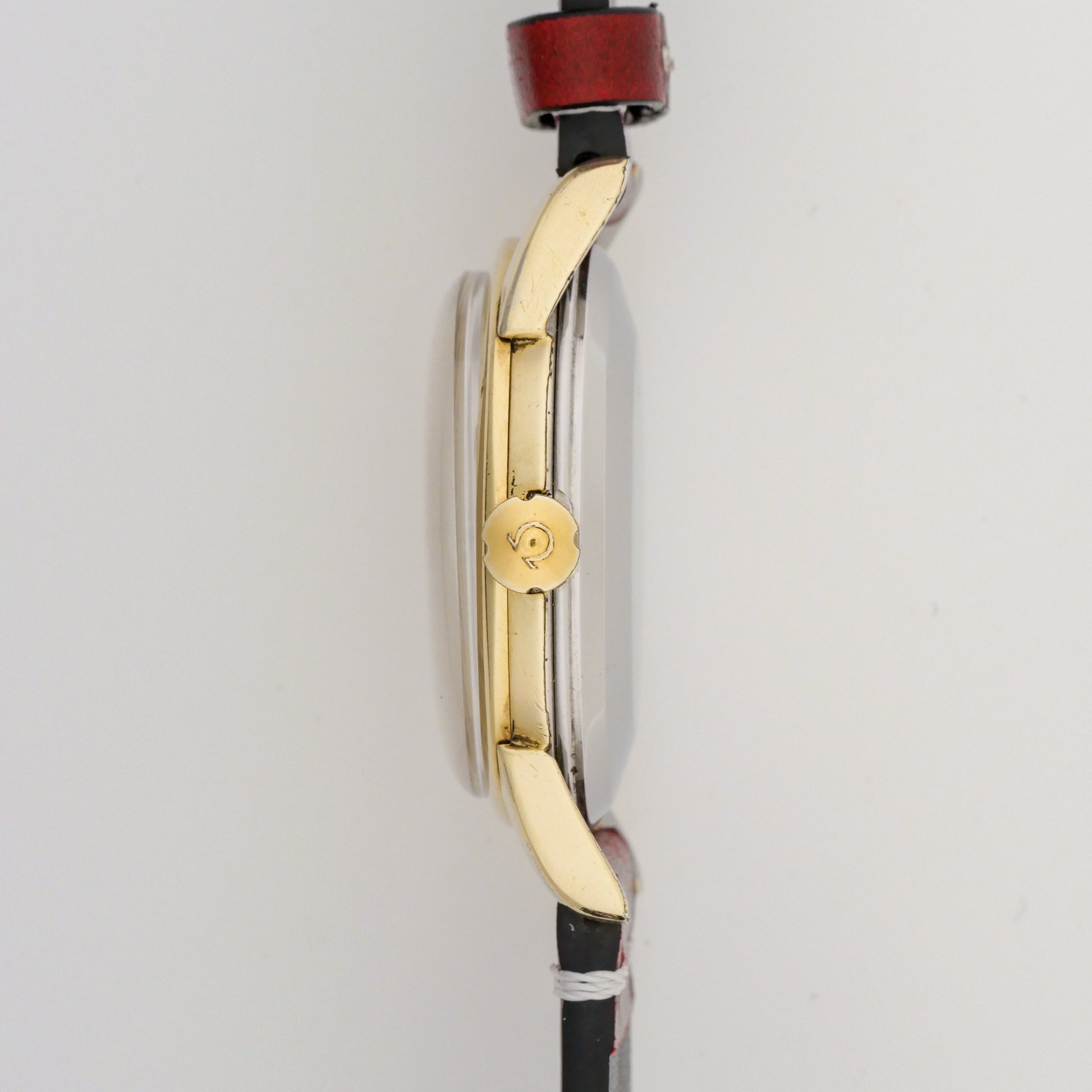 - Dial: is in good condition with a clean, cream-colored appearance. The hour markers and hands retain their original gold tone without significant discoloration. The date window at 3 o'clock is clear and properly aligned. The Omega logo and text remain crisp and legible, with no apparent damage or staining to the dial surface.