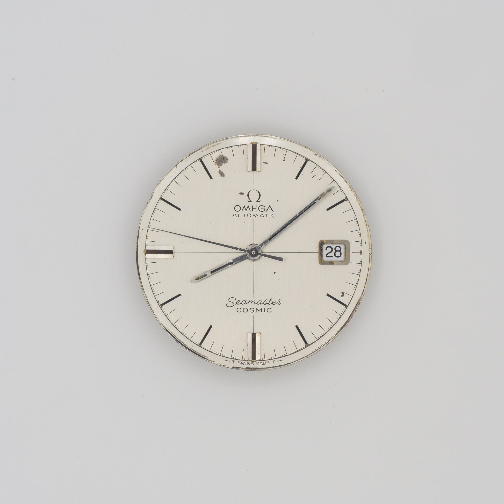 - Dial: shows some patina and aging, few small spots or marks visible, particularly near the 12 o'clock position.