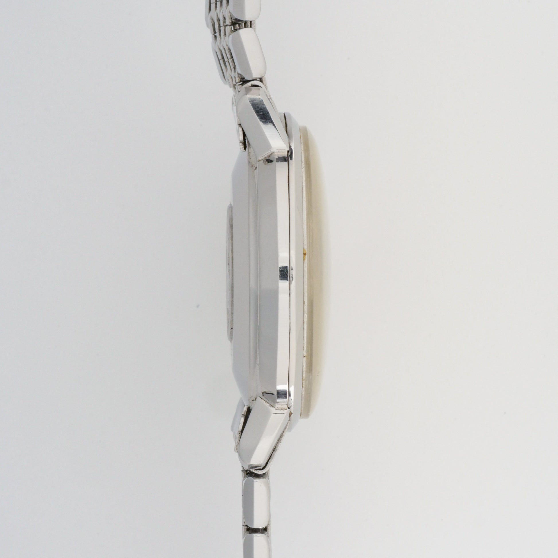 - Case: shows moderate signs of wear consistent with age and use. There are visible scratches and minor dings on the case edges and lugs. The finish has some patina but maintains its overall integrity. The caseback is legible but shows surface wear, and the beading on the crown remains intact.