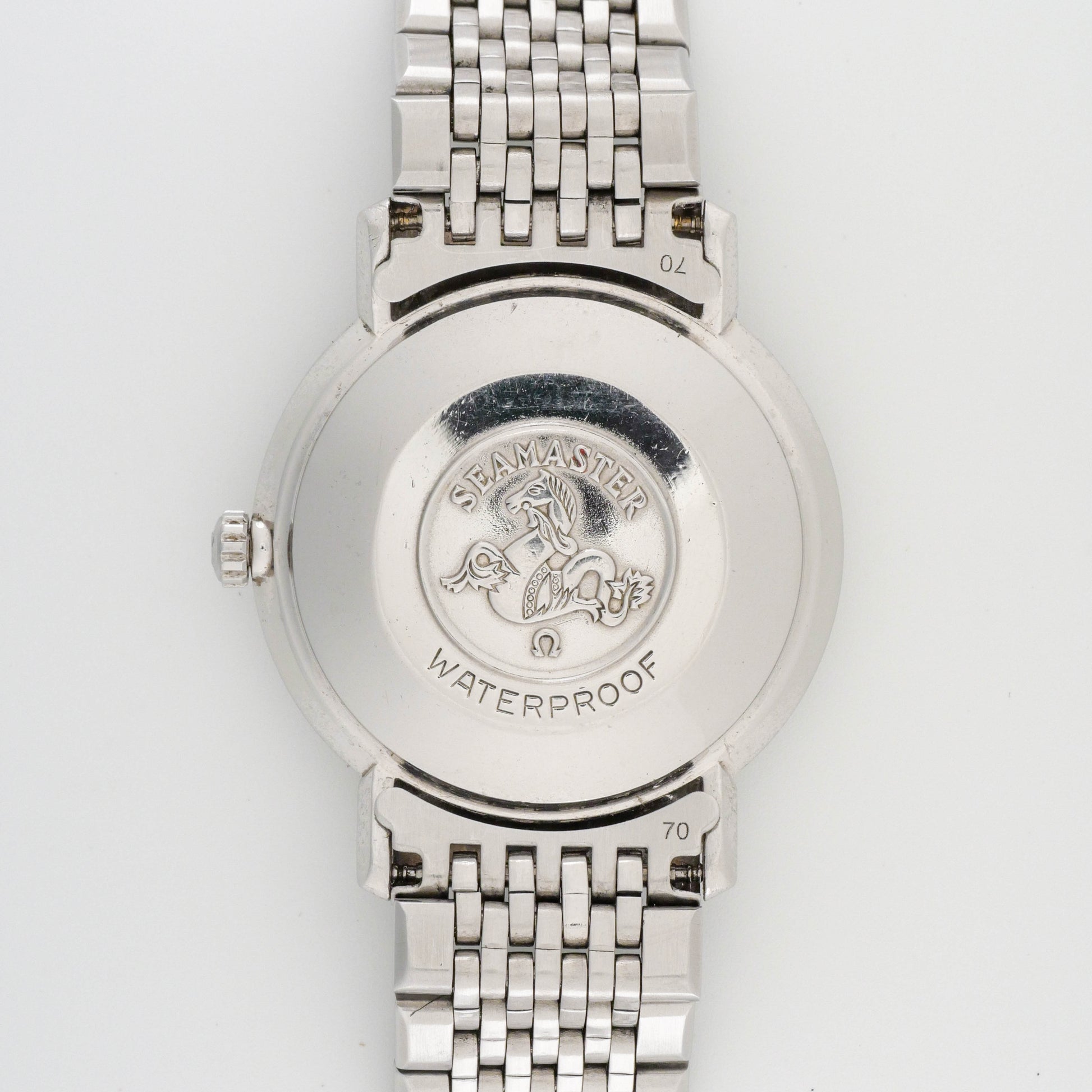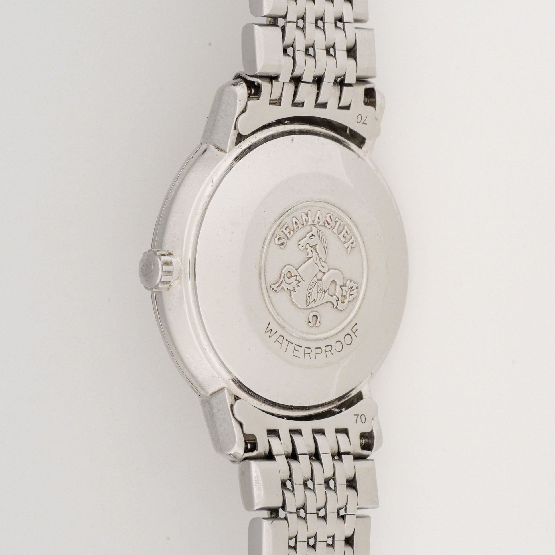 - Signed Stainless Steel Case Back with Seamaster Hippocampus Logo