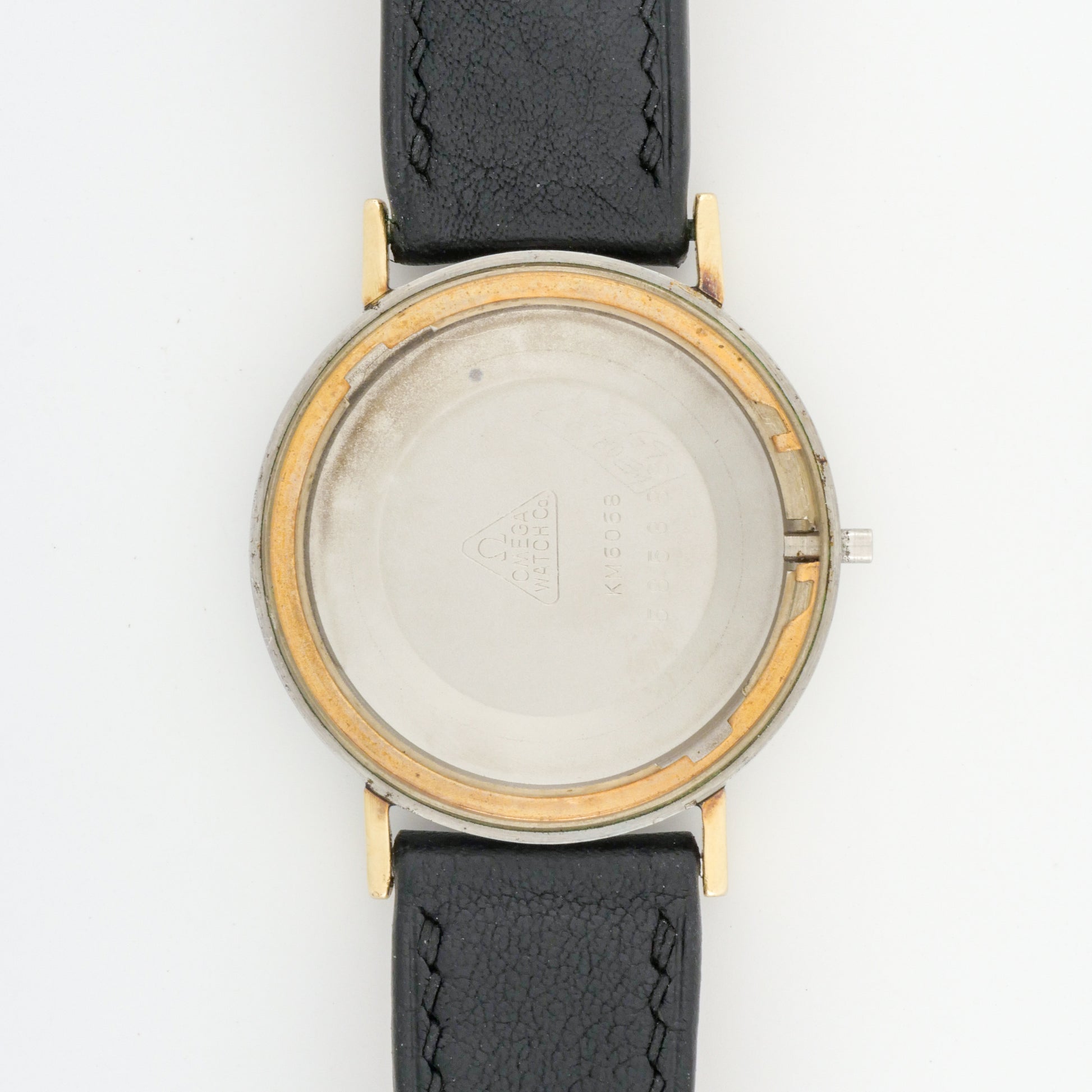 - Case: shows moderate wear consistent with age, including some visible wear to the plating particularly on the edges and lugs. The case has maintained its original shape and polish, though there are signs of light scratches and patina on the metal surfaces. The crown shows expected wear.