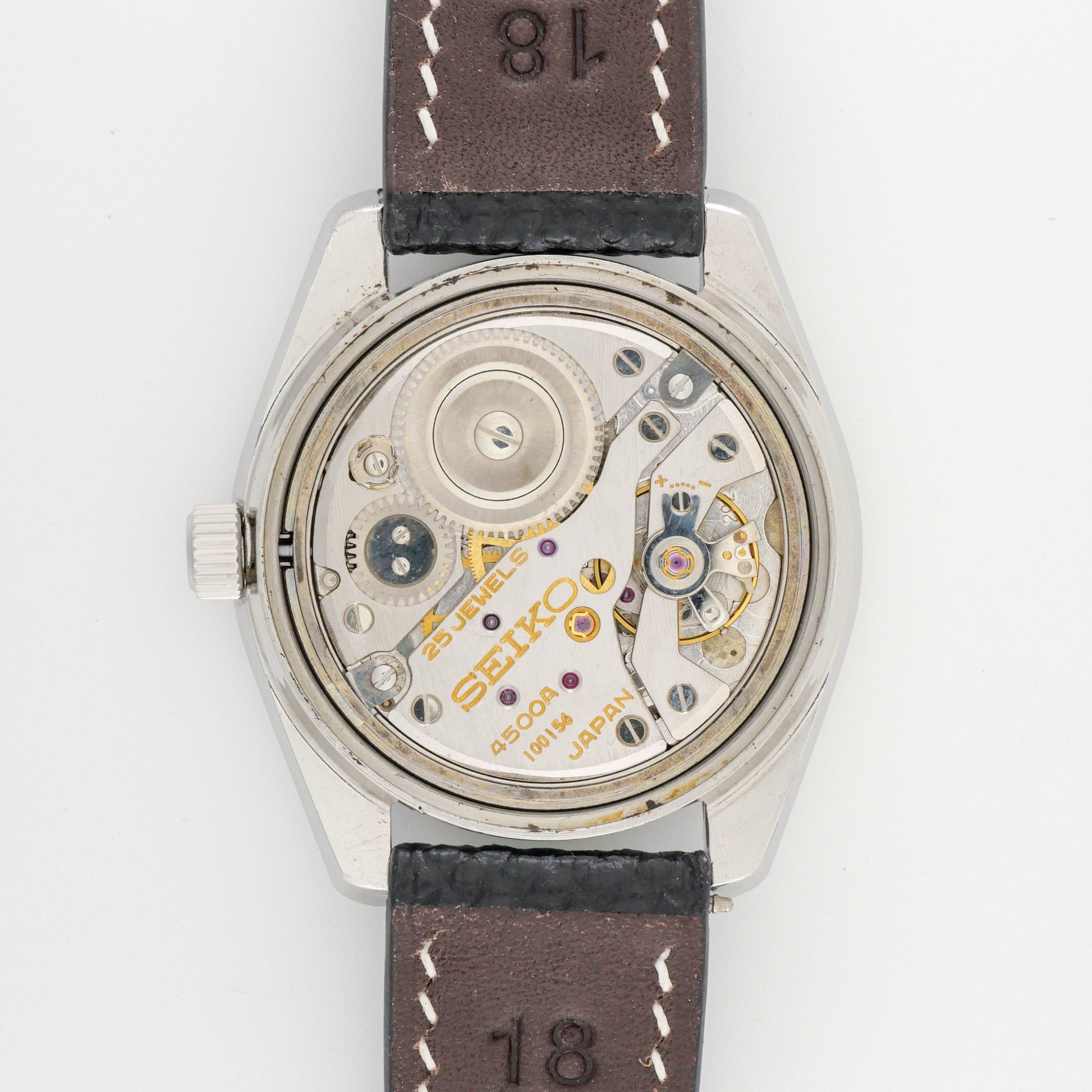 - Caliber: Seiko 4500A Manual Wind Movement