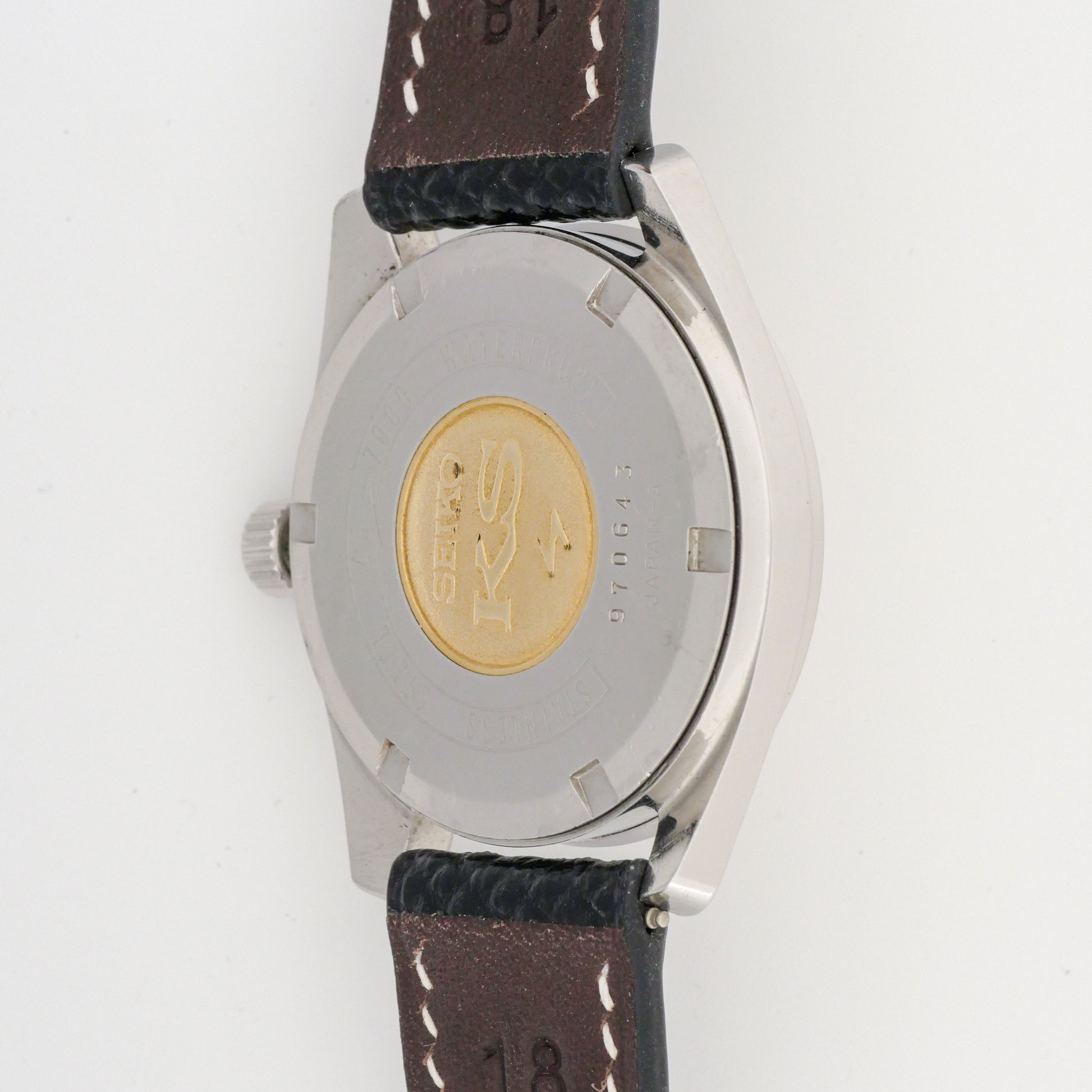 - Signed Stainless Steel Case Back with King Seiko Gold Medallion