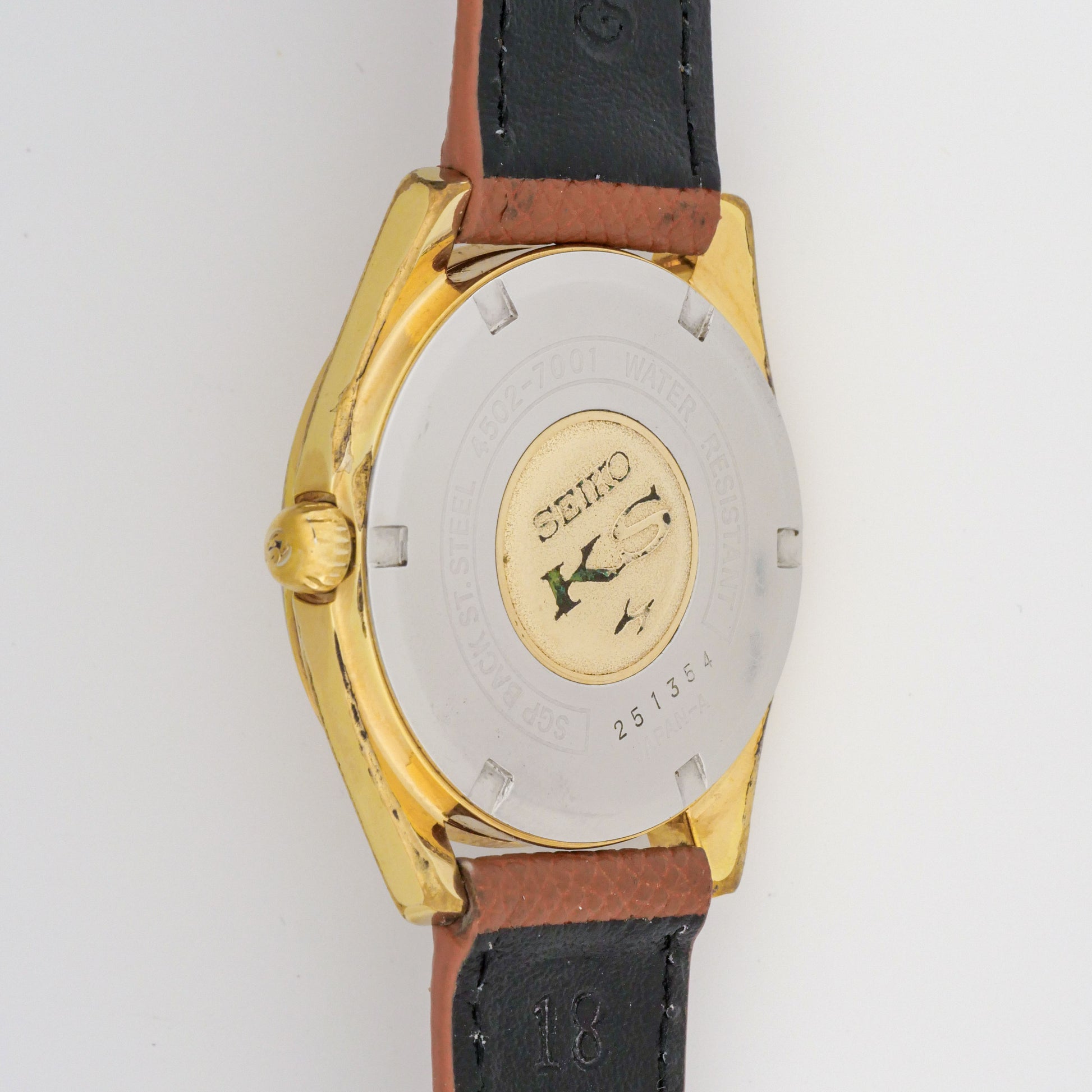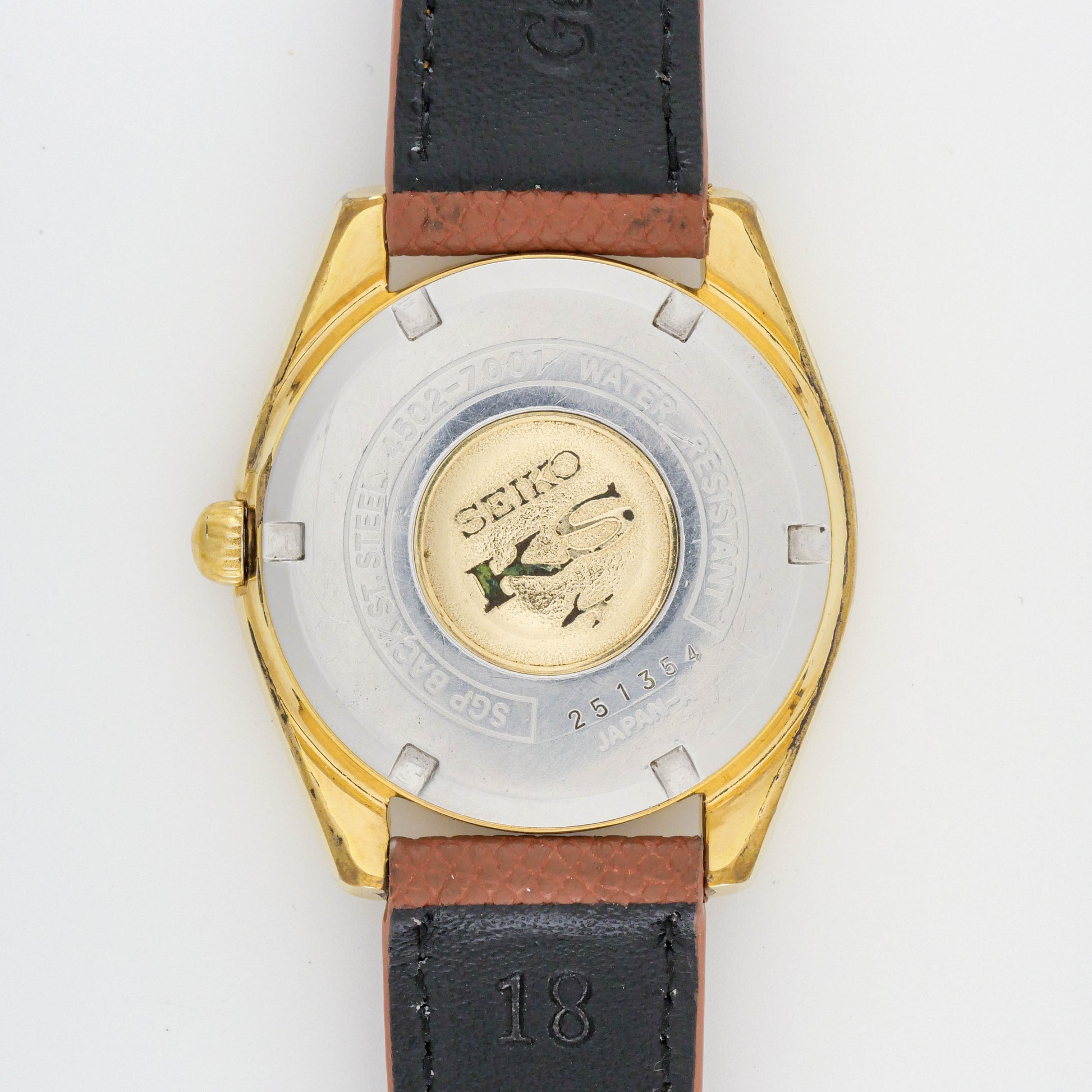 - Signed Stainless Steel Case Back with King Seiko Gold Medallion