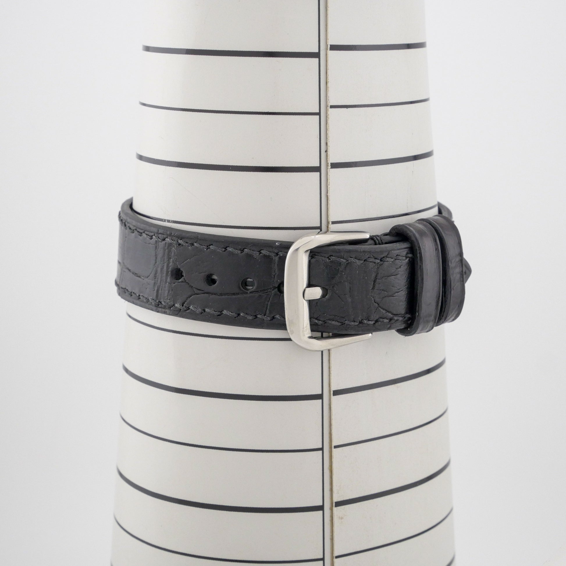 - Replaced Black Embossed Leather Strap with Stainless Steel Buckle