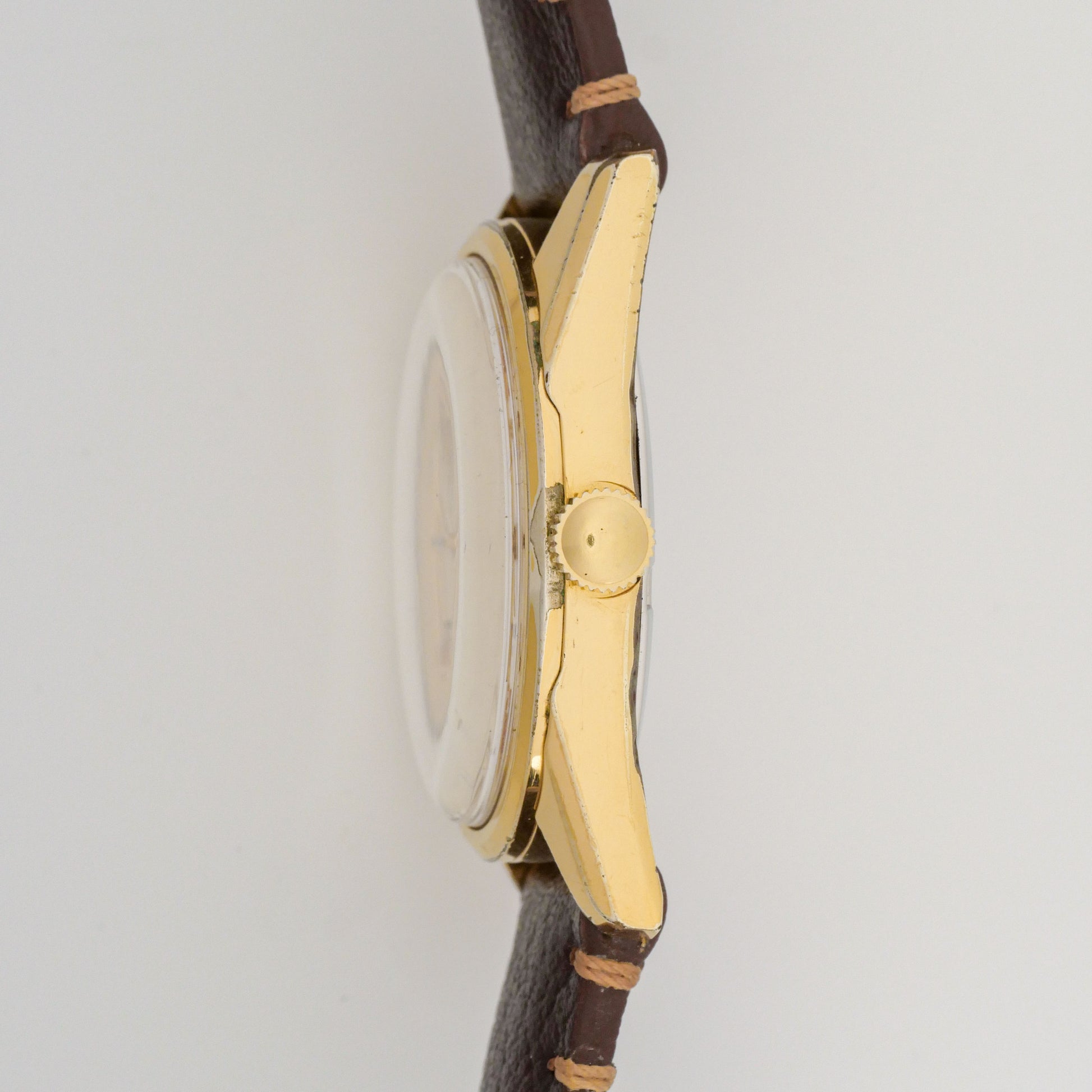 - Dial: Excellent condition with minimal aging. Clean cream surface, strong lume plots with slight patina. Applied markers and gold hands show matching vintage tone. Crisp, legible printing throughout.