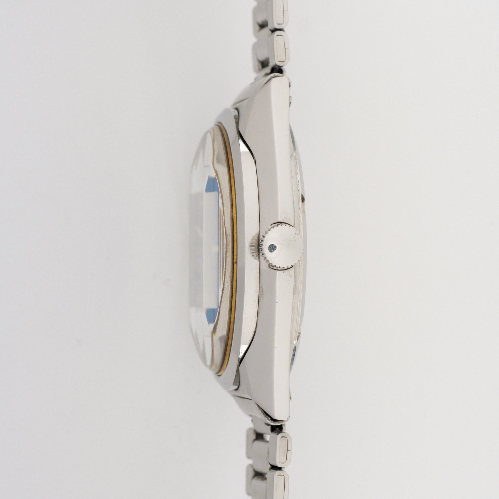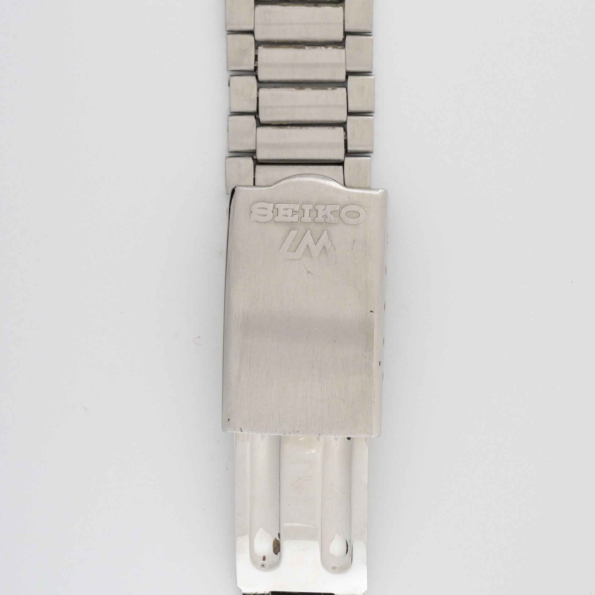 - Case: shows moderate wear with visible scratches and scuffs throughout. The brushed finish displays typical aging, and the case back has scratches around its perimeter. No major dents or damage, just honest vintage wear.