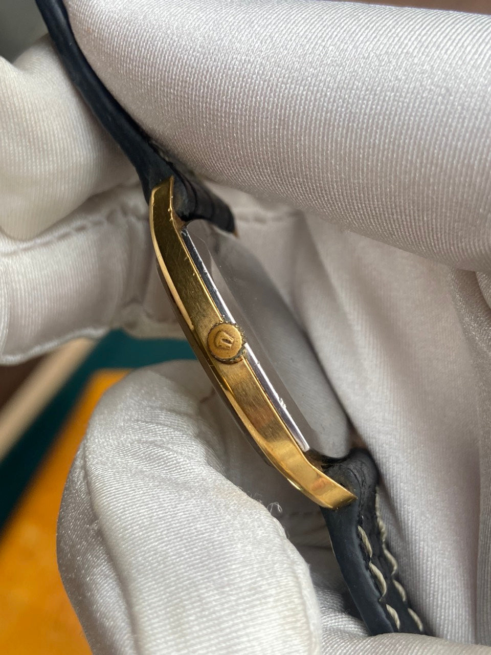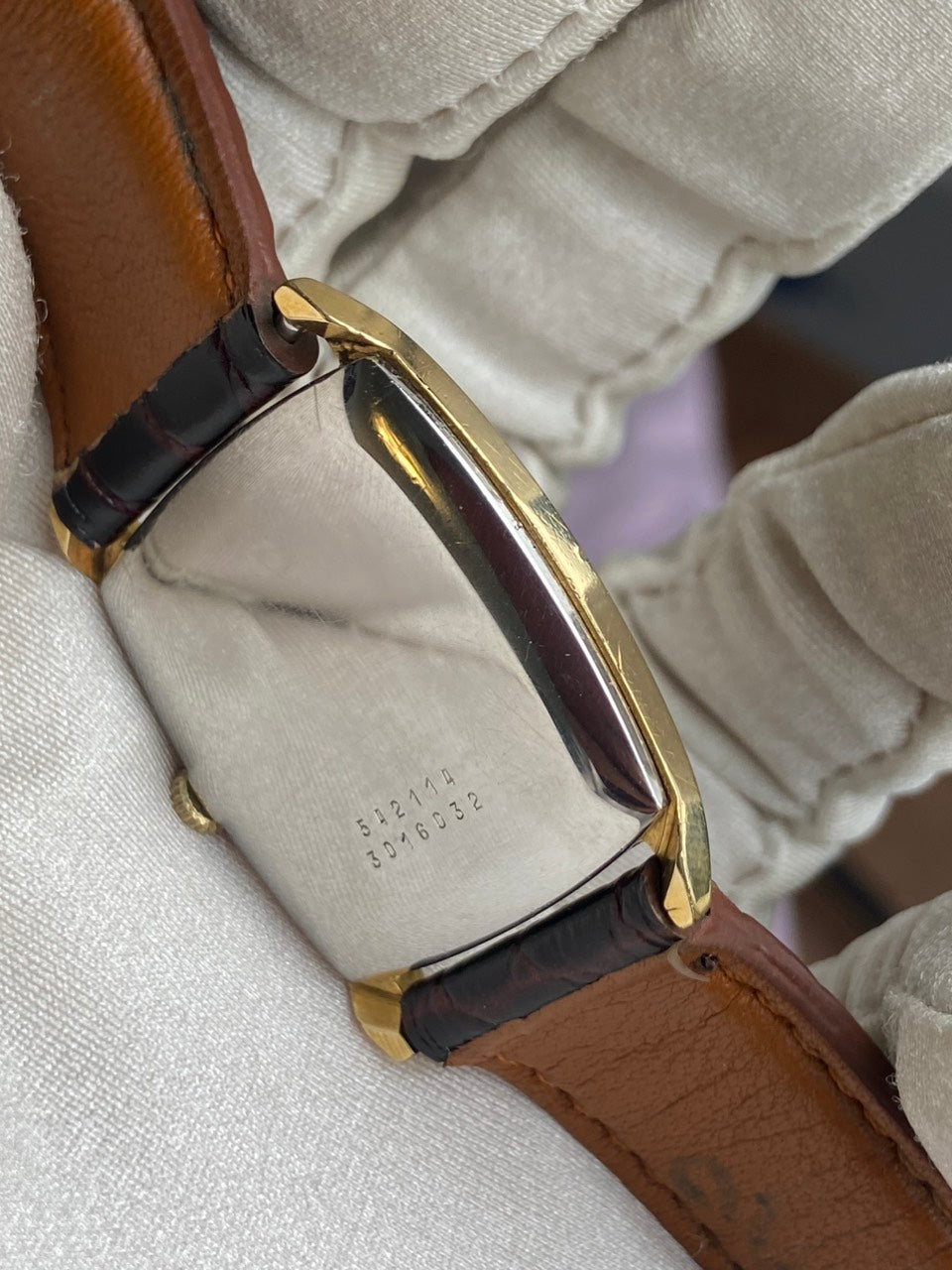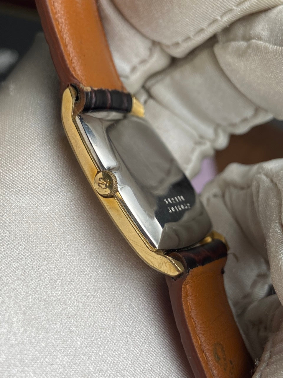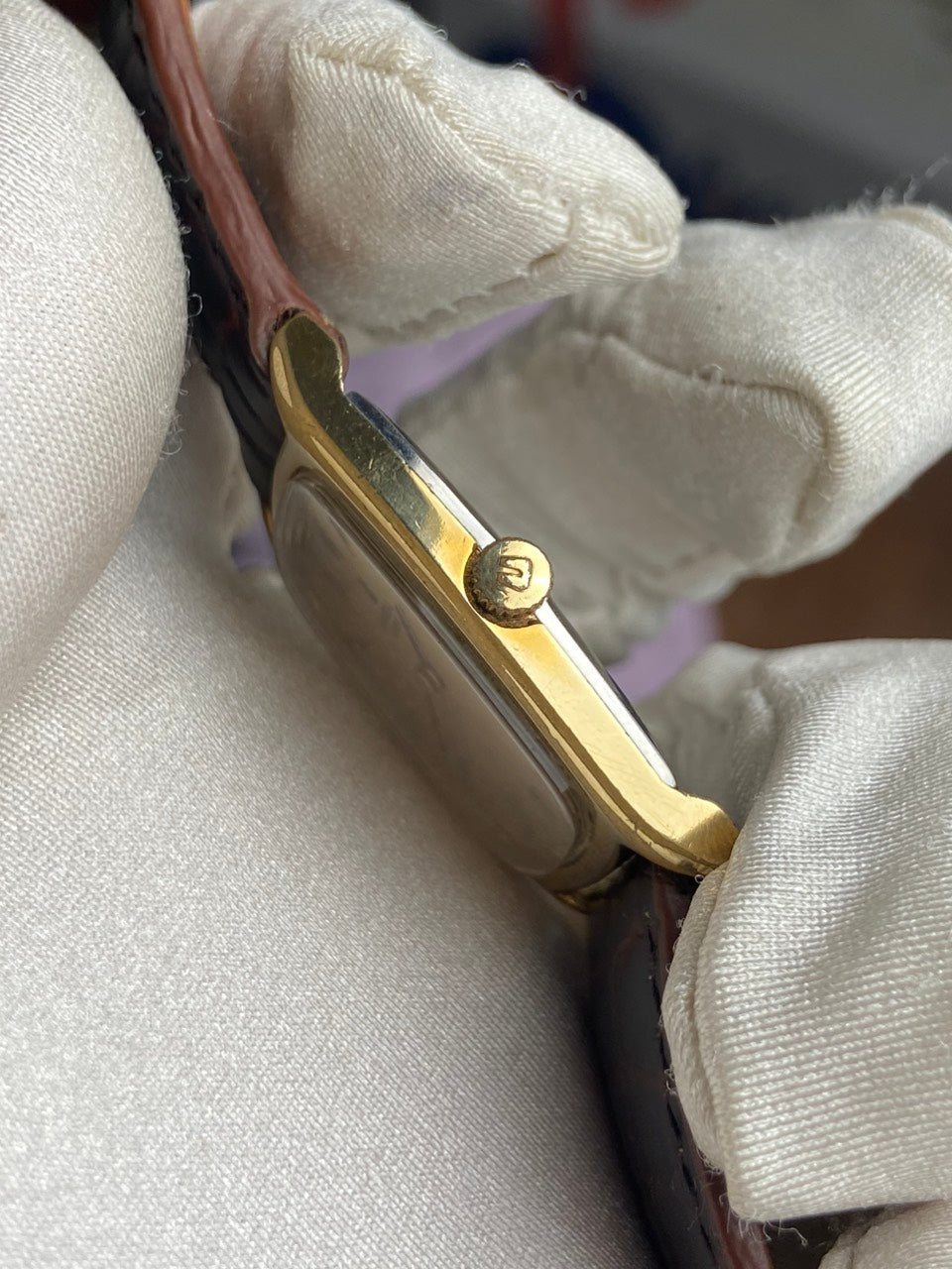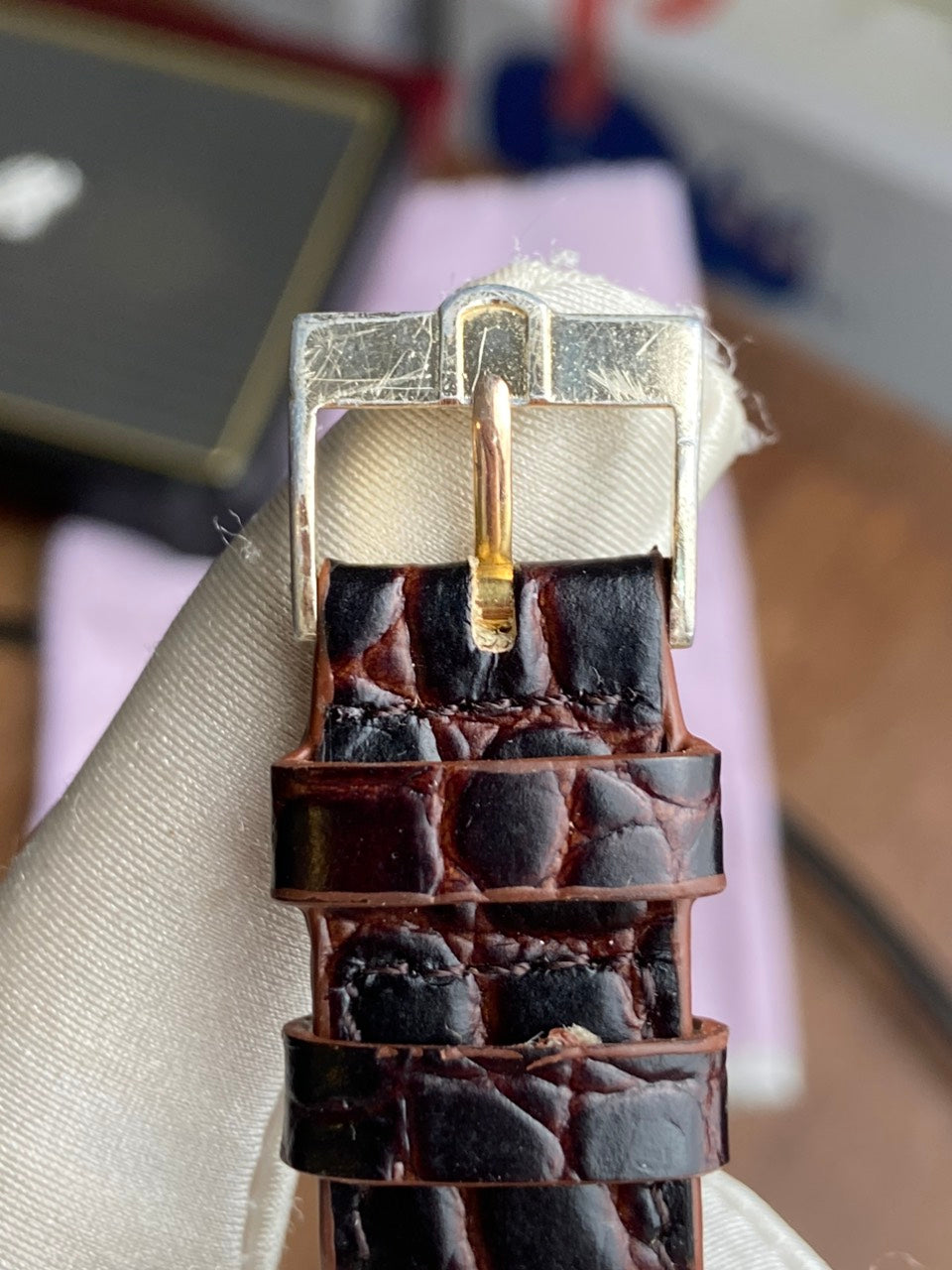 - Aftermarket brown leather strap with original buckle of Universal Geneve.