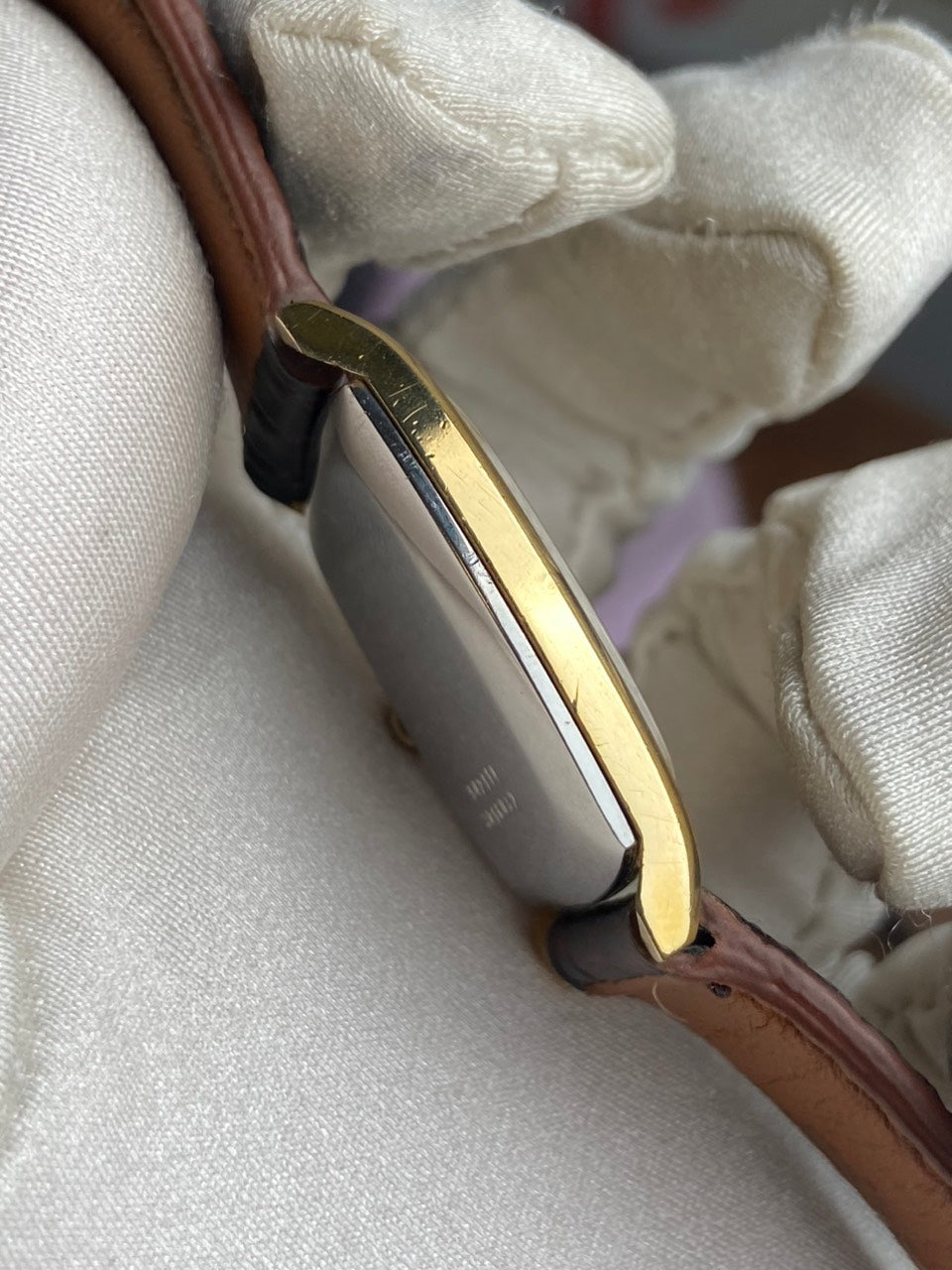 - Gold plated stainless steel with light marks and scratches all over, hasn't been polished.