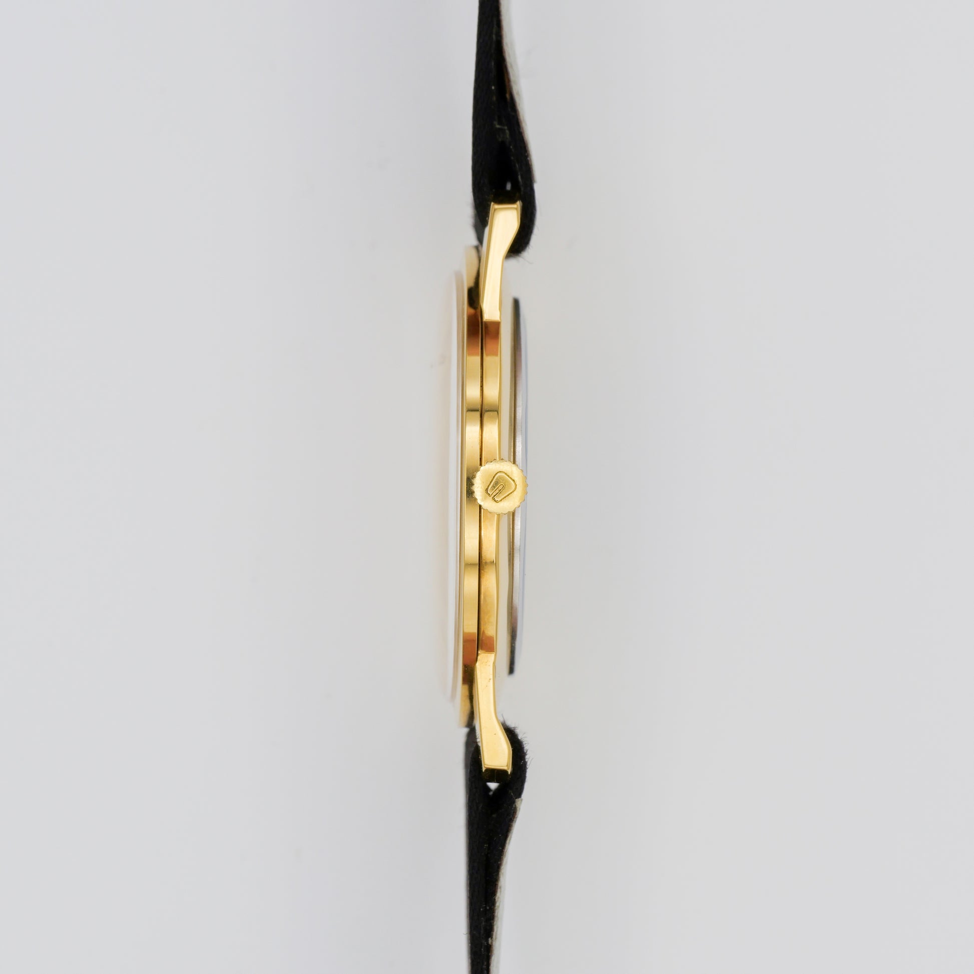 - Signed Leather Strap and Gold Plated Steel Buckle