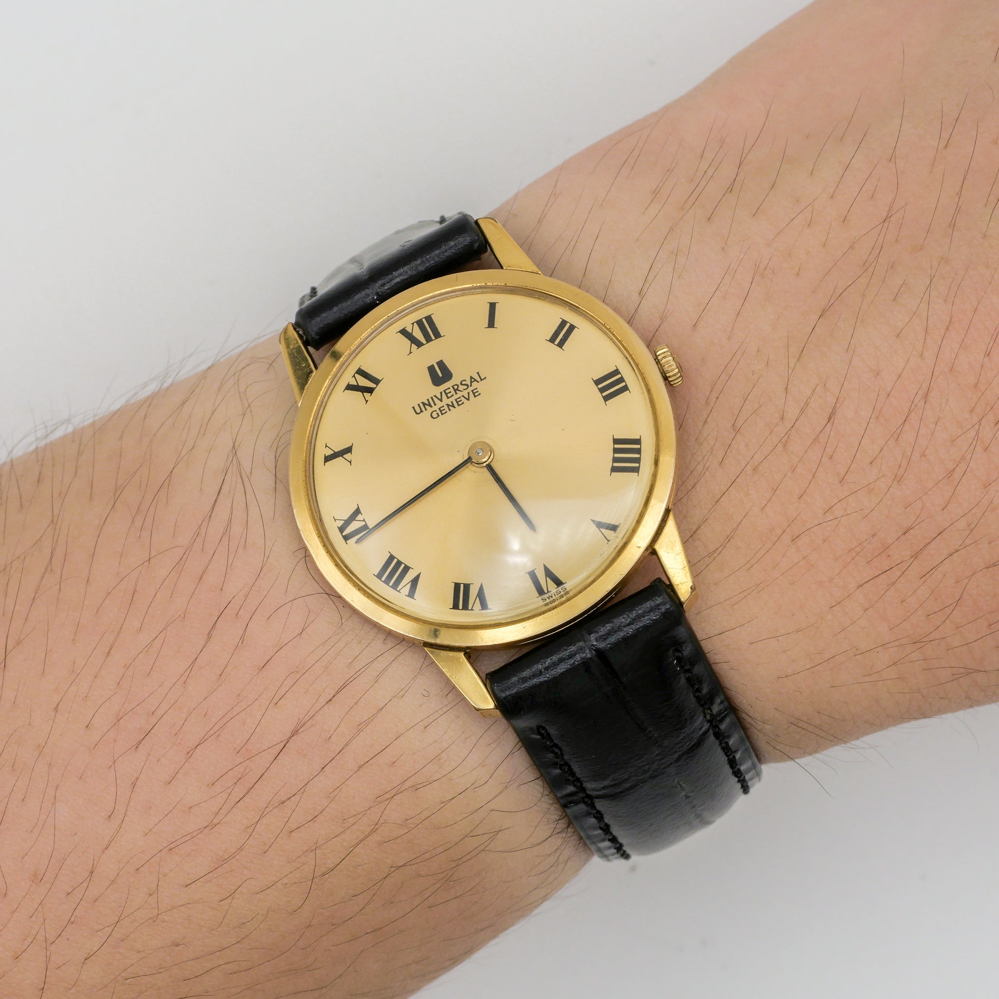 - Factory Finished Gold Dial with Printed Universal Genève Logo