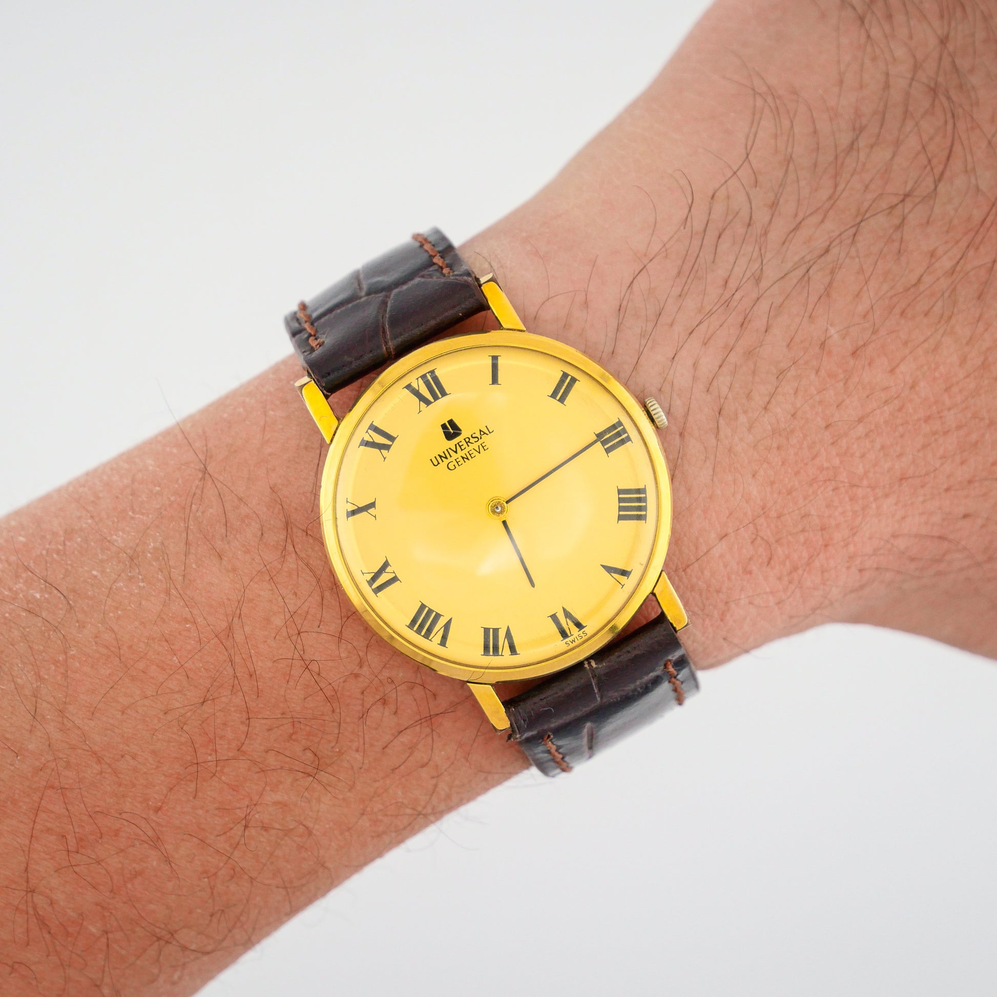 - Factory Finished Gold Dial with Printed Universal Genève Logo