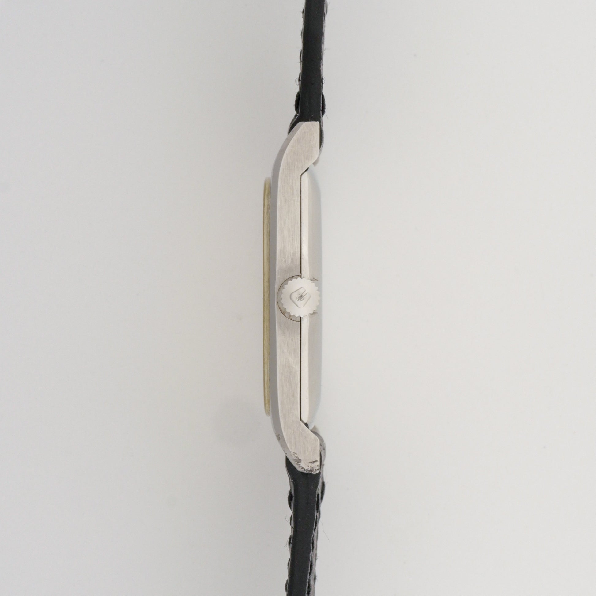 - Dial: maintains good condition for its age with light patina, featuring simple stick hour markers. The logo and text remain clear.