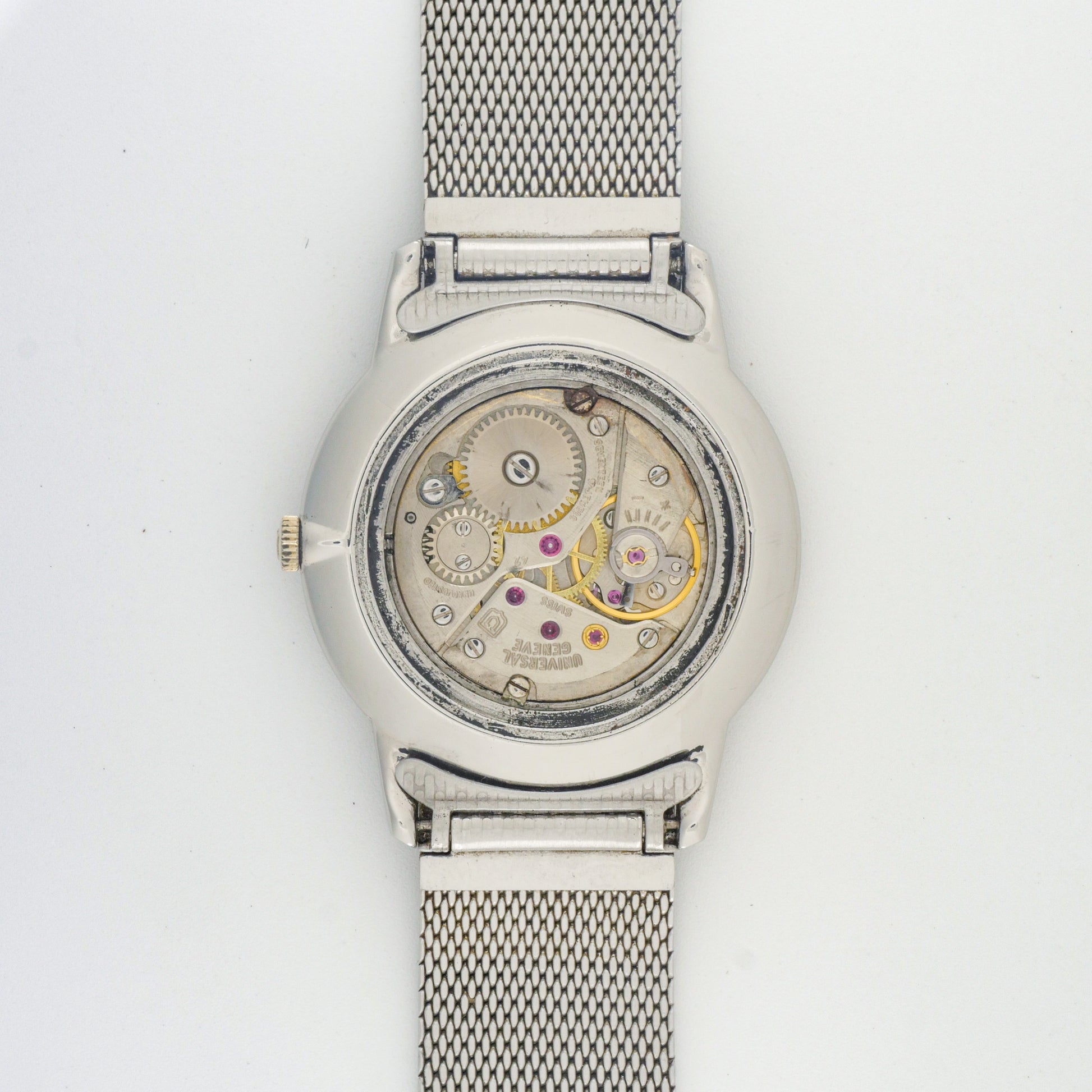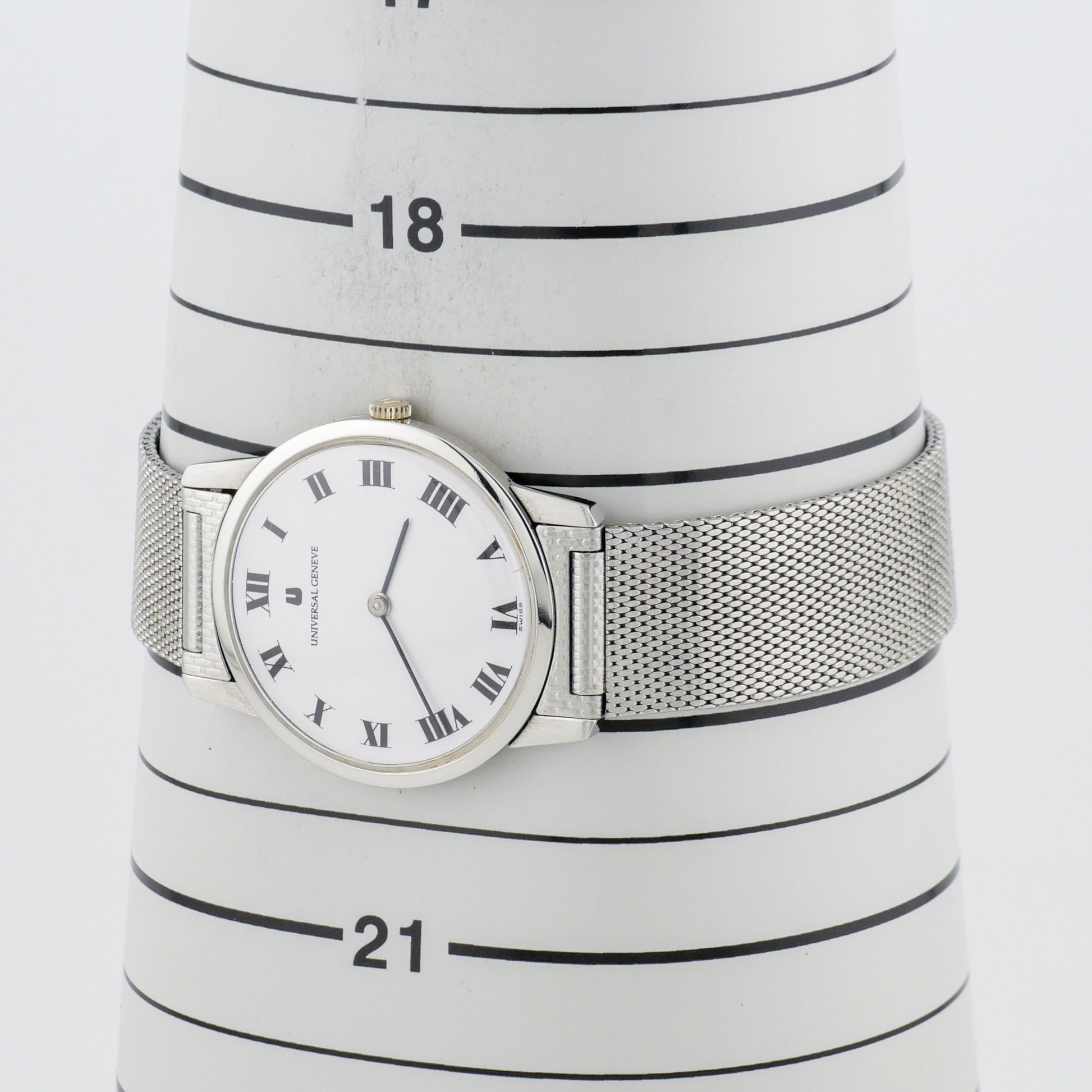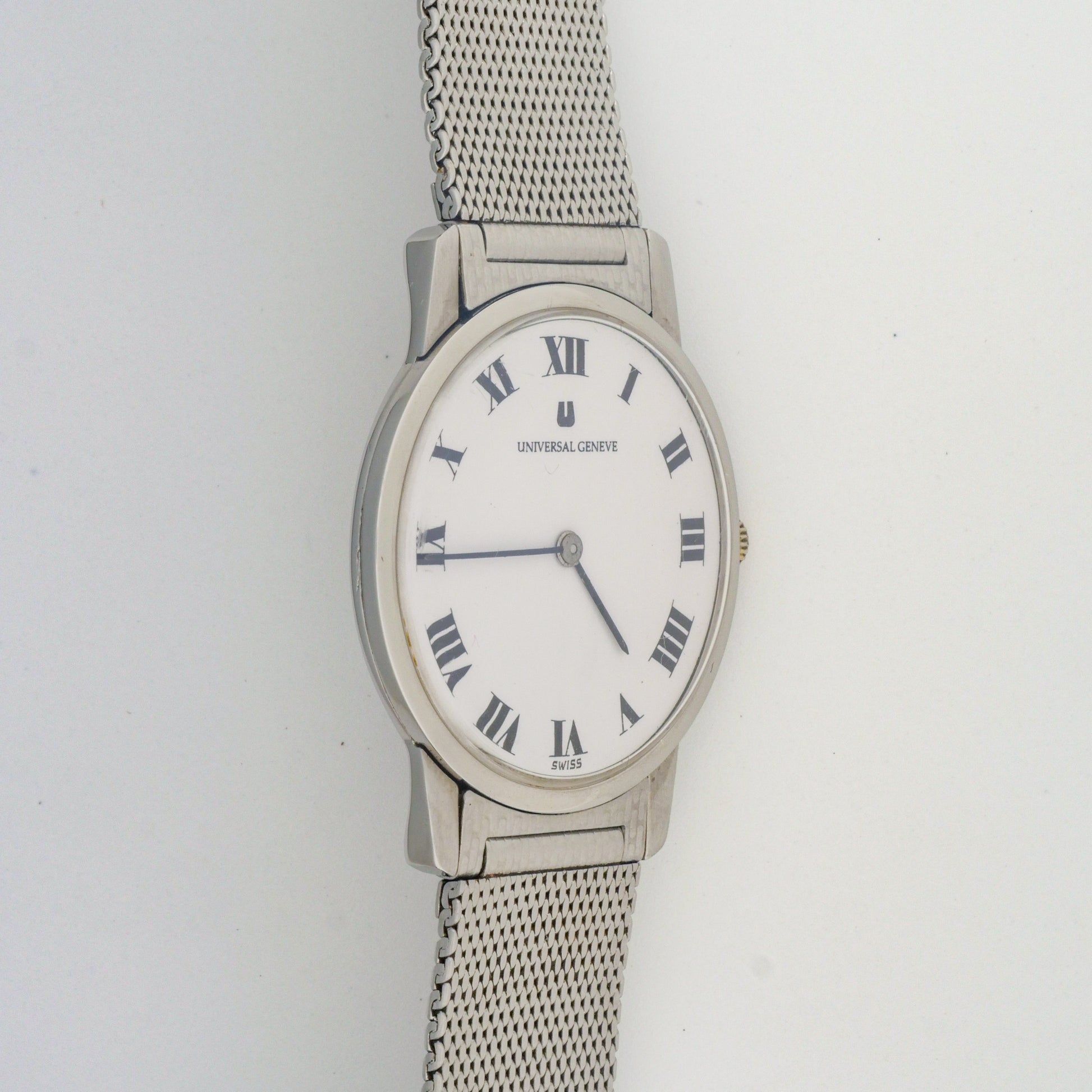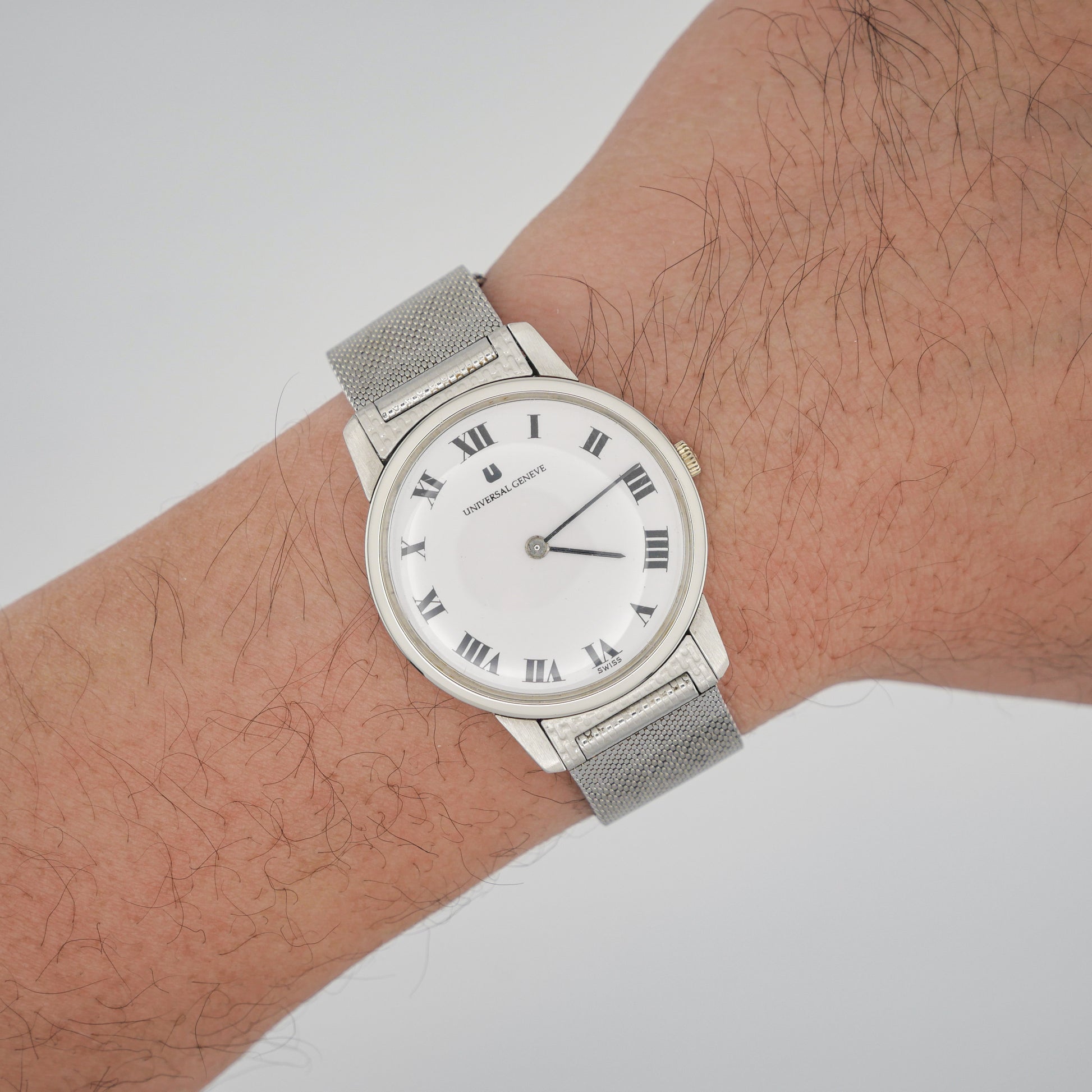 - Dial: is in good condition with minimal aging. There is a few very small marks or dust particles visible under close inspection, but no major spotting, discoloration, or damage. The Roman numerals and Universal Genève text remain crisp and well-defined with no fading.