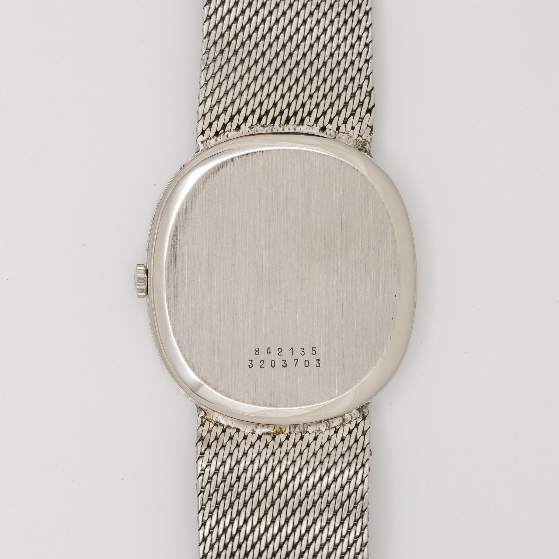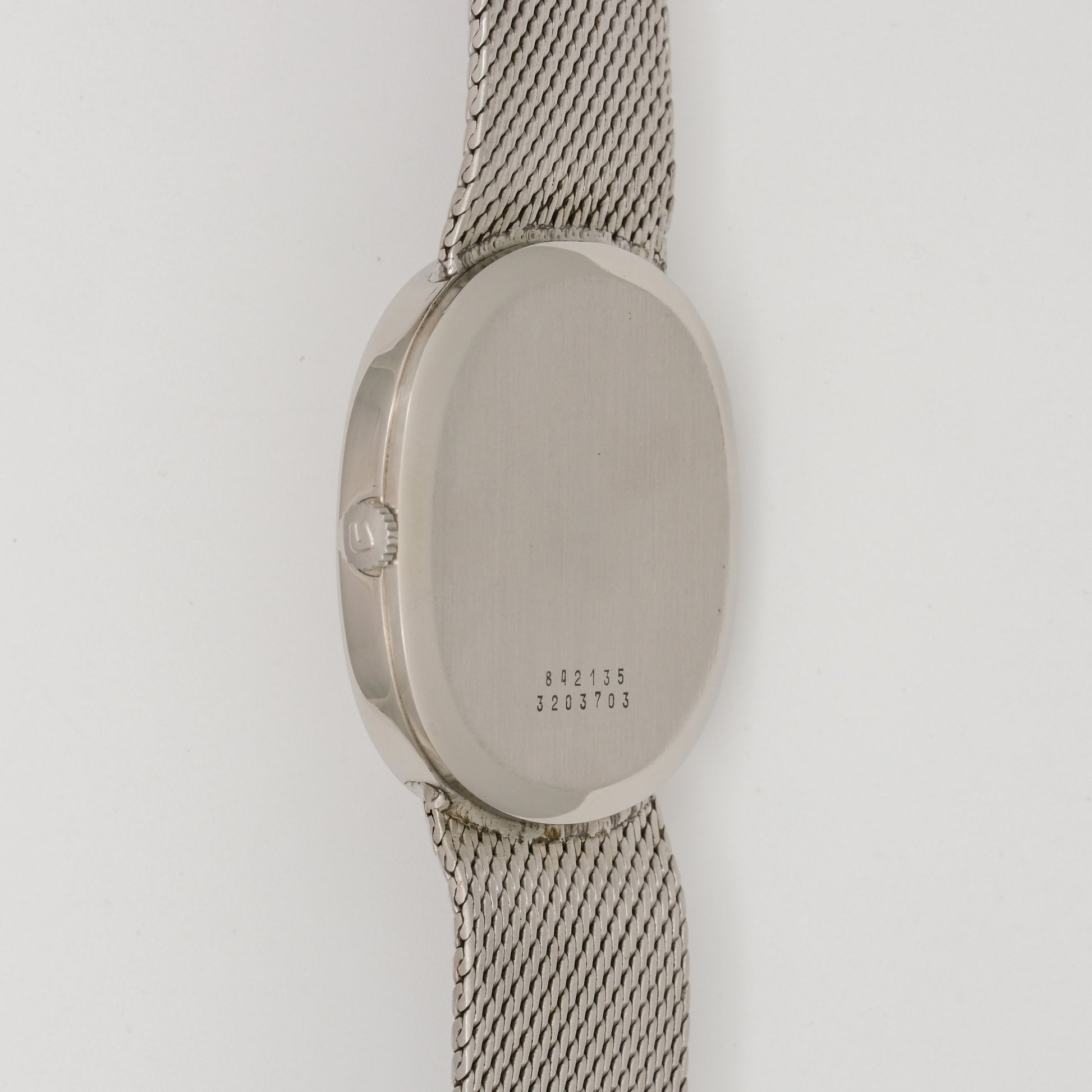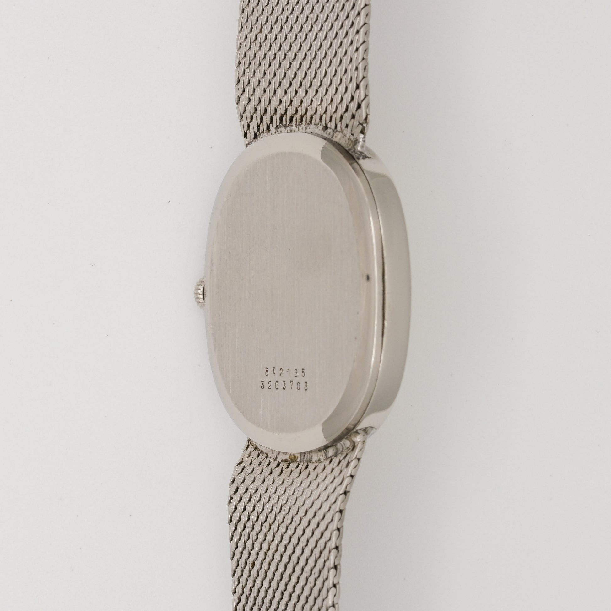 - Case: in very good condition, shows minimal signs of wear, with no visible scratches, dents, or significant tarnishing. It has a sleek, minimalist oval shape made of stainless steel.
