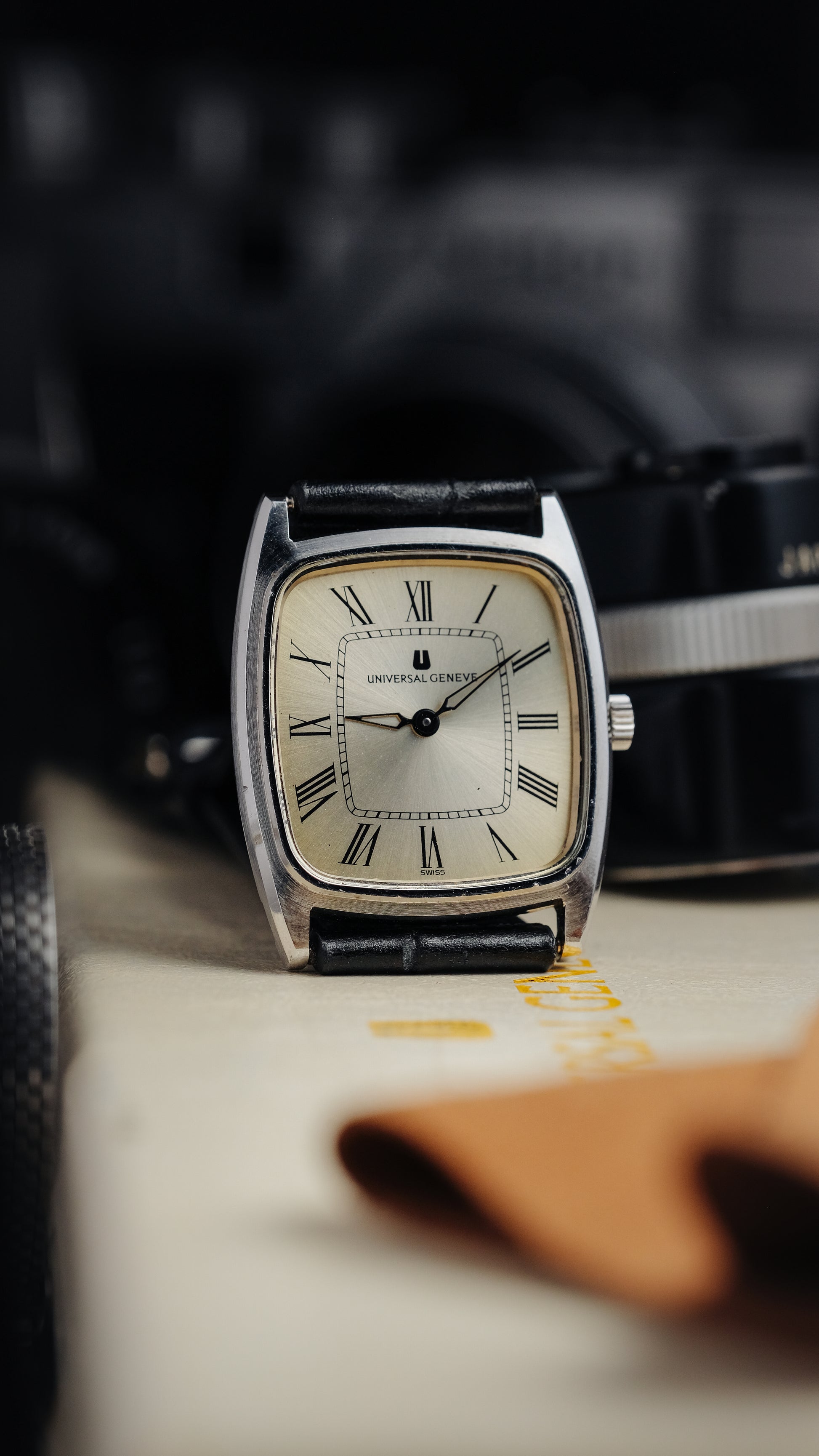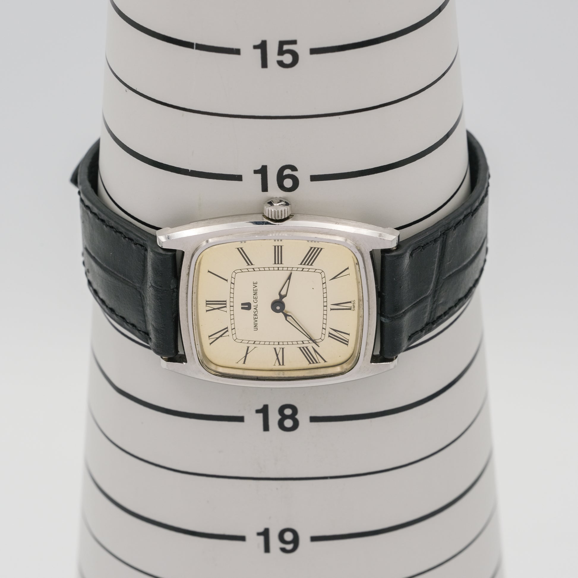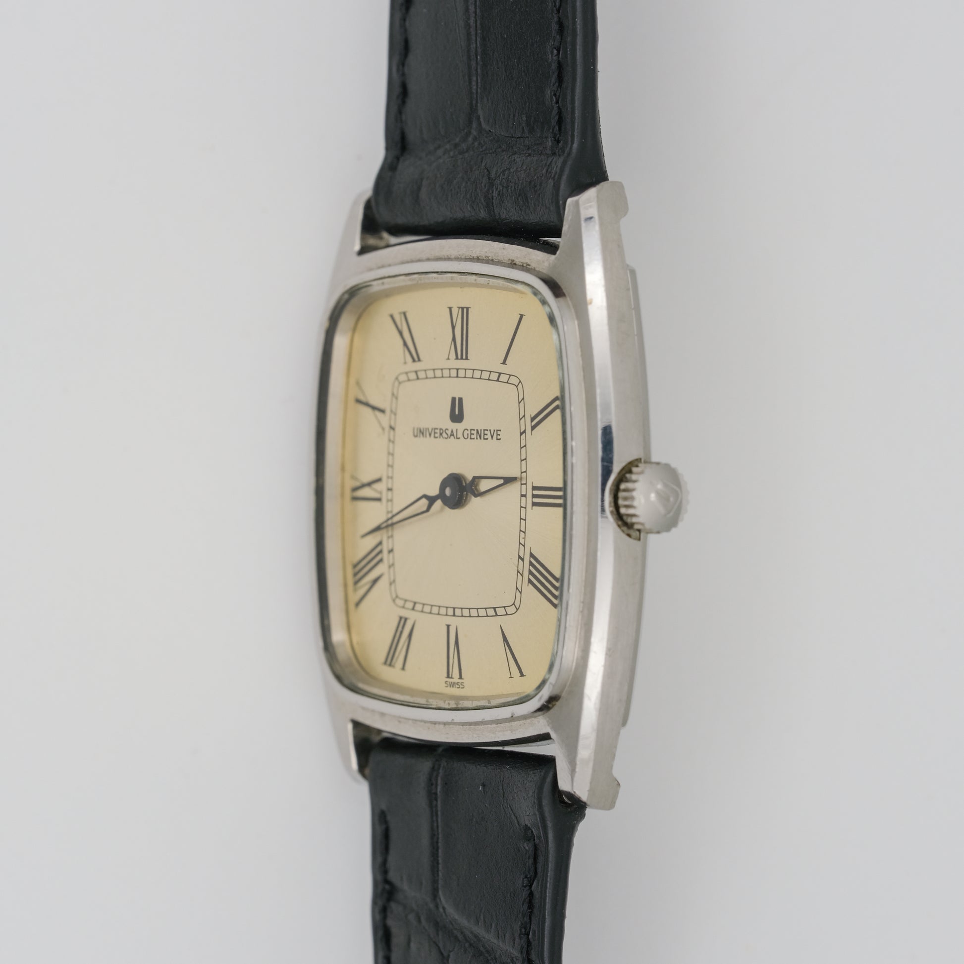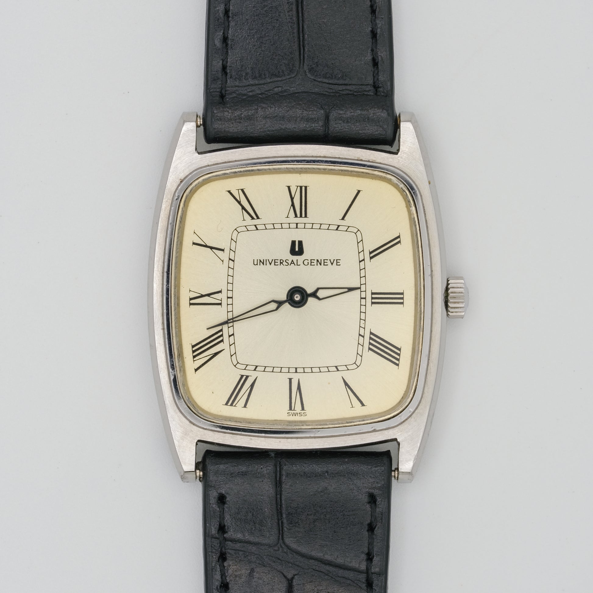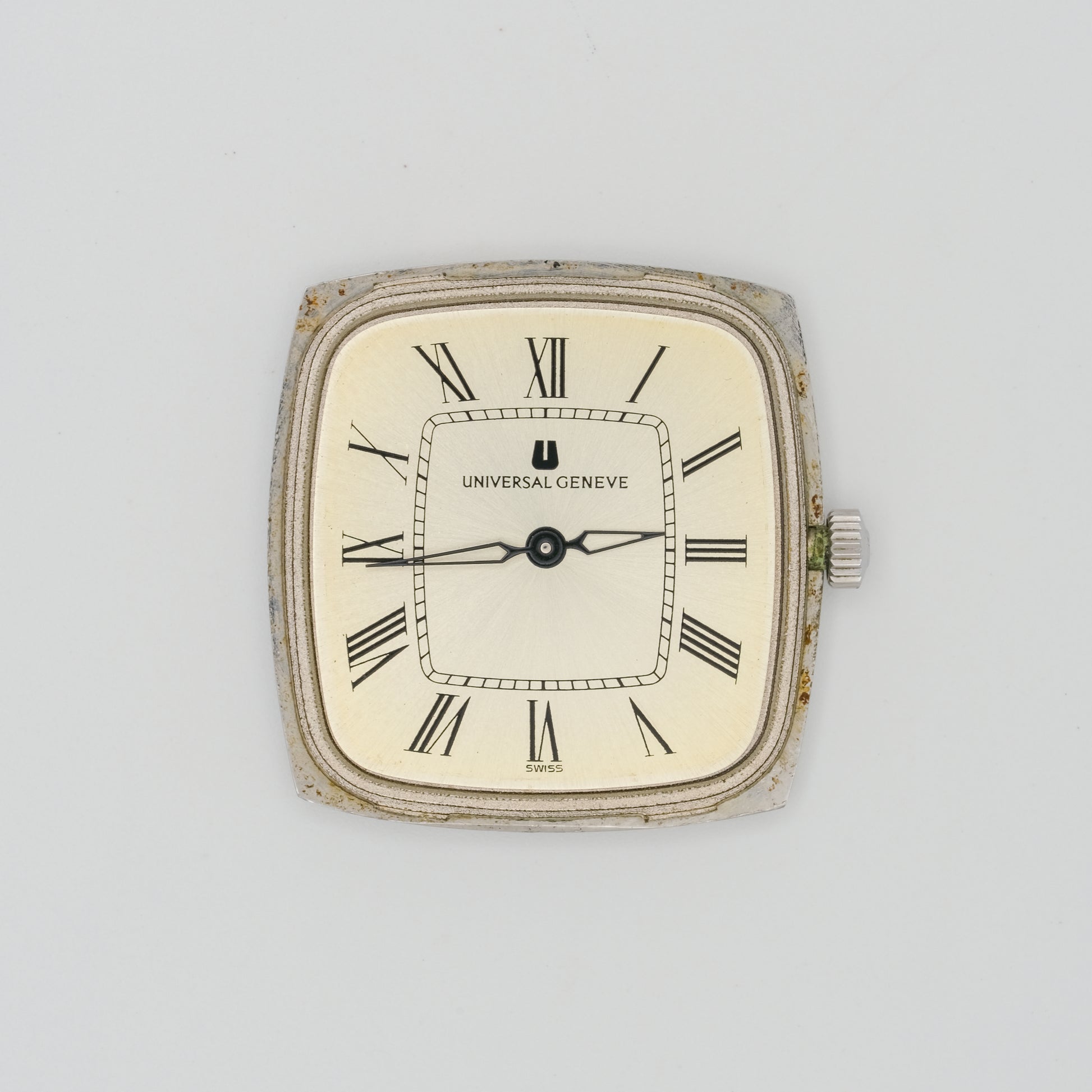 - Dial: is in very good condition, clean and legible, with no obvious discoloration, fading, or damage visible. The Universal Geneve logo and text are clear and intact.