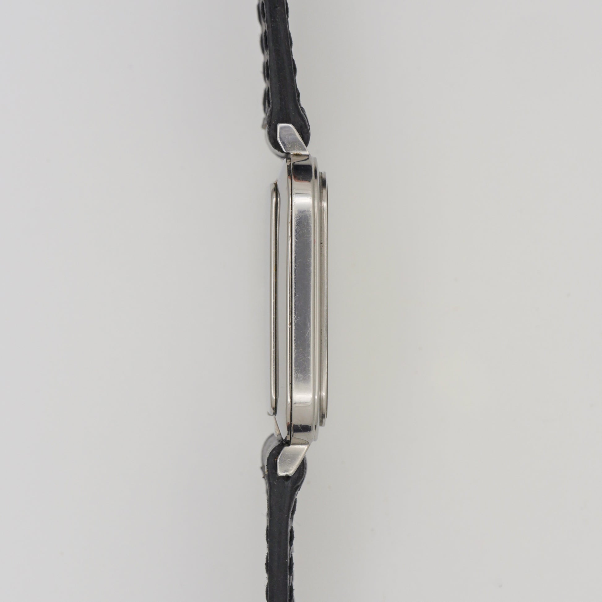 - Dial: some signs of aging, with slight discoloration or patina developing, particularly around the edges. The hour markers and hands appear intact, though there may be some very minor spotting or oxidation on the dial surface consistent with the watch's age.