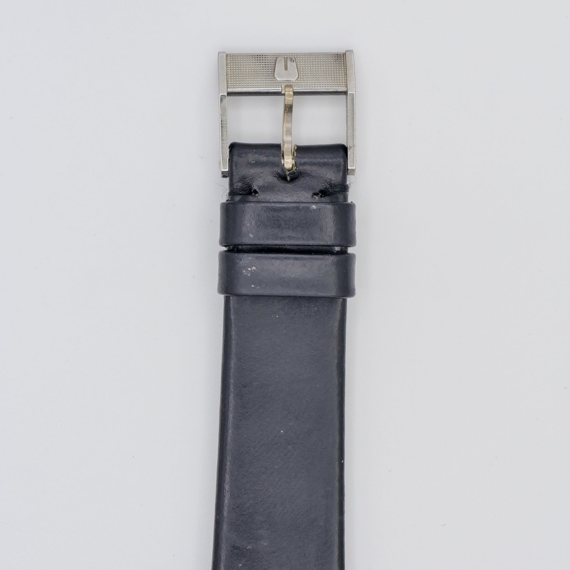 - Original Signed Black Leather Strap and Steel Buckle with Universal Genève's logo