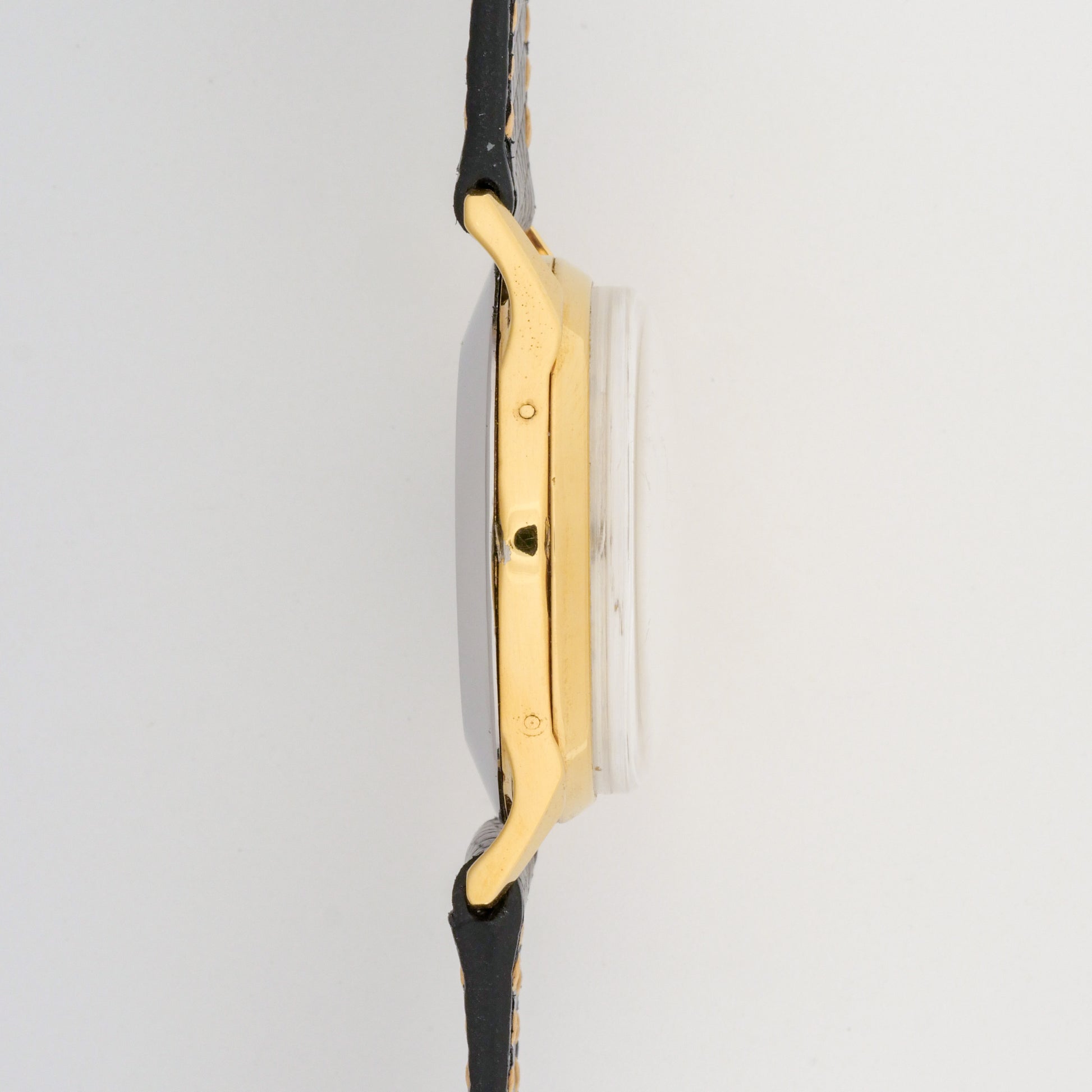 - Case: shows moderate signs of age and wear. The case edges retain their original shape but display light scratches and minor dings consistent with decades of use. The crown is intact and functional. The gold plating shows some patination, particularly on the lugs and case sides, but generally maintains good coverage with no major loss or brassing visible. The caseback is in good condition with expected surface scratches.